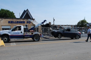 Kelleher officials say the dealership will be rebuilt in another undisclosed area of town but for the time being, business will be conducted – more or less as usual – from the part of the dealership kitty-corner from the fire, which was not affected by the fire.