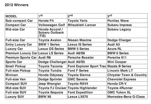 The 2012 “Best Retained Value Awards” released Feb. 15 by Canadian Black Book (CBB) show Japanese cars and trucks are holding their value very well in all popular vehicle segments in Canada.