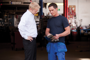 Other technicians have arrived but are upstairs in the changeroom reading the newspaper. A percentage of the technicians left early in the day without asking permission, which is driving the service advisors crazy, but it is hard to see that from the service manager’s office.
