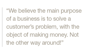 We believe the main purpose of a business is to solve a customer’s problem, with the object of making money. Not the other way around!