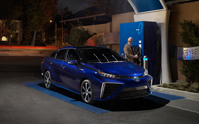 The Toyota Mirai, a four-door, mid-size sedan, is a zero-emission hydrogen vehicle with an EPA estimated driving range rating of 502 kilometres and 28 km/L city/highway/combined. Its performance fully competes with traditional internal combustion engines – but uses no gasoline. With a refueling time of approximately five minutes, the Mirai creates electricity using hydrogen, oxygen and a fuel cell, and emits nothing but water vapor in the process.