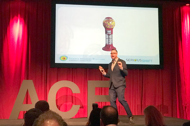 ACE kicked off with a discussion around the experience economy by keynote speaker Dennis Moseley-Williams. He’s the founder of DMW Strategic Consulting, and the author of Serious Shift: How Experience Staging Can Save Your Practice.