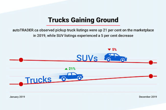 Pickup truck listings were up 21 per cent from January to December 2019, while SUV listings decreased 5 per cent during this period, and the Jeep Wrangler did not make the list for the first time since 2014. Of course, there remains key regional taste differences for drivers across the nation.
