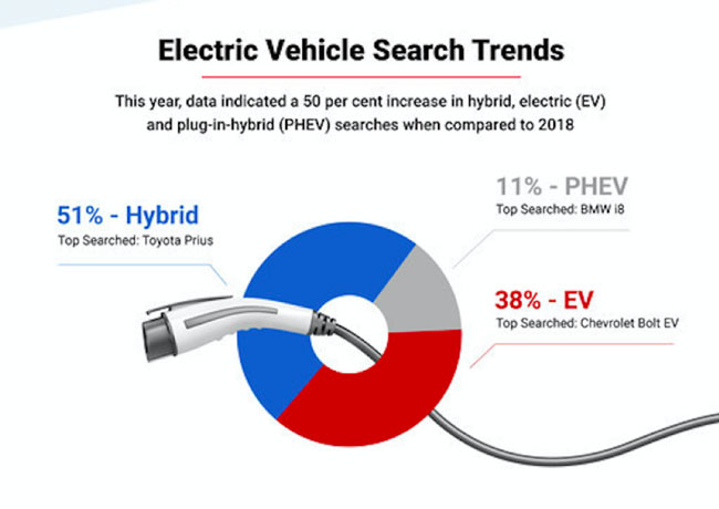 “This year, data indicated a more than 50 per cent increase in search volume for hybrid, electric vehicles (EVs) and plug-in-hybrid vehicles (PHEV), when compared to 2018,” said autoTRADER.ca.