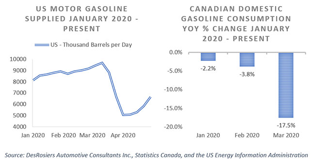 “Data on Canadian gas consumption is still lagging but preliminary data for March shows a 17% decline for the month — a figure that will undoubtedly deteriorate in April as the full implications of the various provincial states of emergencies were felt,” said DAC. “Overall DAC is forecasting a 46-52% decline in kilometres driven in Canada in April — with a slow recovery in the subsequent months.”