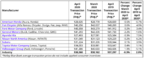 “Although auto sales are expected to drop more than 50% in April, average transaction prices held steady from the earlier months of the year and rose by 2% year-over-year, likely helped by the abundant incentive offers enacted by automakers and finance companies in March of this year,” said Tim Fleming, analyst for Kelley Blue Book.