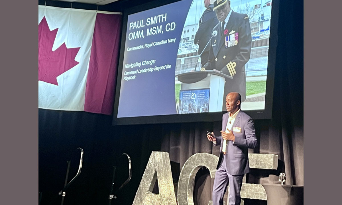 The day’s closing keynote address was from Paul Smith, Commander and Commanding Officer of HMCS York. He took the crowd through his ascent to senior leadership roles, the importance of mentoring along the way, and the challenges the military still faces in creating a more representative force. Smith is the first Black officer to command a Royal Canadian Navy warship.