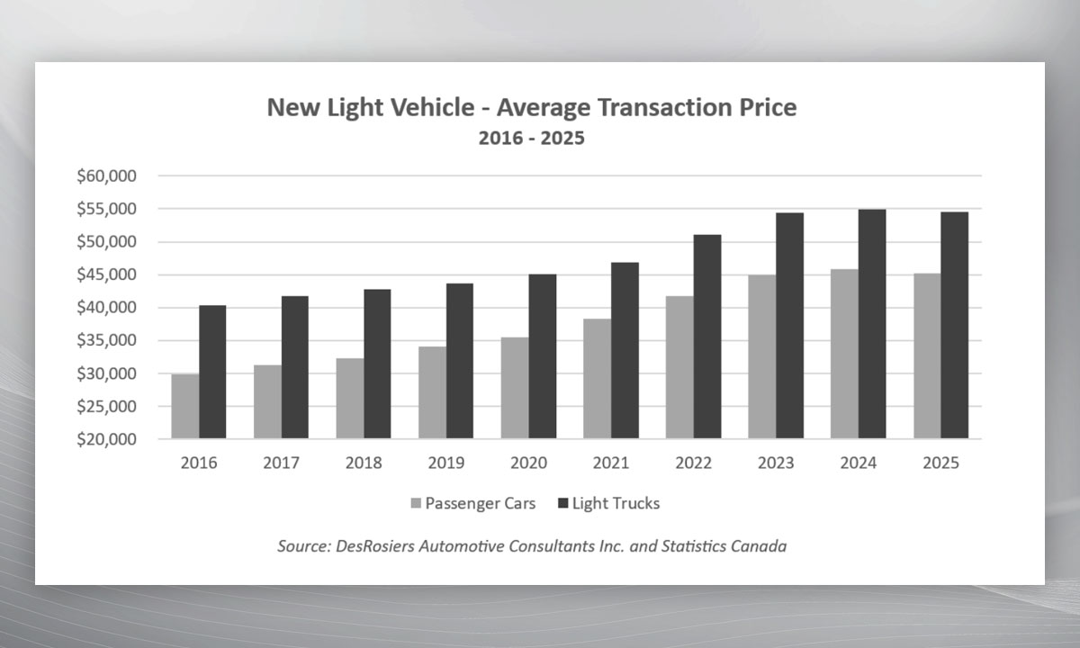 Average transaction prices for new light vehicles in Canada declined slightly in 2025, marking the first pullback after several years of sharp increases.